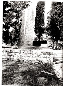 תמונה מס' 2: צילום האנדרטה בשנות ה-90. צלם לא ידוע. חוברת "אמץ אתר" בהפקת בית הספר כרכור. ארכיון בית הראשונים.